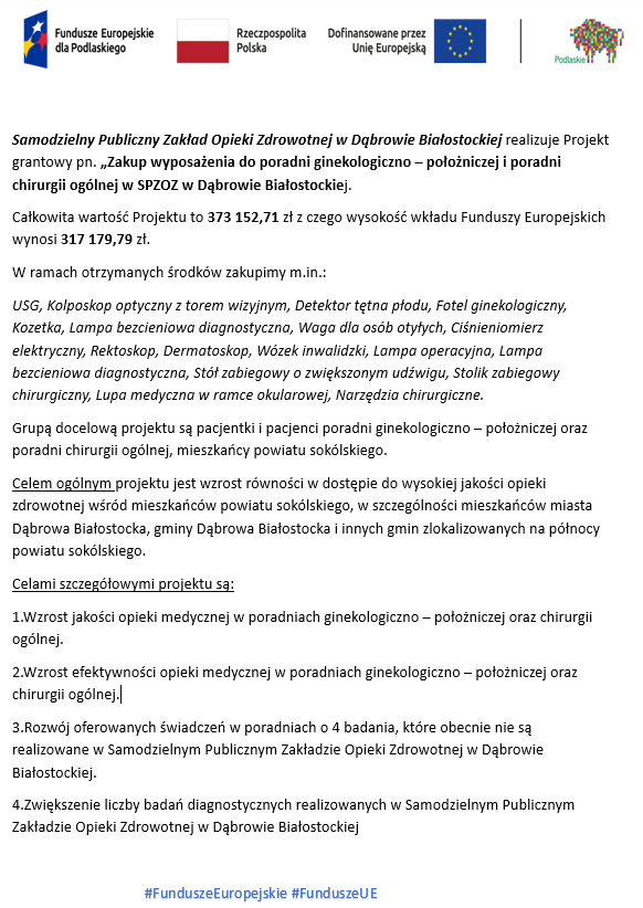 Samodzielny Publiczny Zak³ad Opieki Zdrowotnej w D¹browie Bia³ostockiej